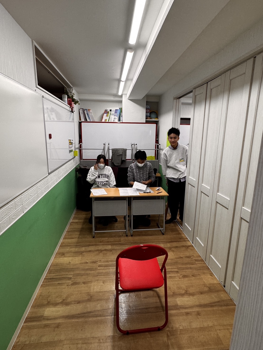こちらは外部生も加わり、より緊張する実践的な練習会になりました。熱のこもったアドバイスは、時に生徒の号泣を招きます。ワタシ達も合格をつかみ取ってほしいので、真剣勝負です。いいのよいいの。今できなくて悔しくて涙が出るのはそれだけ真剣に向き合った証拠じゃない。改善点があった。それを指摘された。悔しい。できない自分に腹が立つ。おのれみておれ、試験までには仕上げていくぞ。これですこれ。これこそが、これこそが目的なのです。これこそが、学びなのです。このために、わざわざ三連休ど真ん中の知らん塾にまできて、しらんおっちゃんにズバリ図星を突かれ悔し涙で頬を濡らす意味なんです。おのれみておれ。その子がどこの塾でその後どうなったのか、他塾生なので、知る由もないです。が、きっと合格しますように。奮え、受験生。奮え、自由塾生!自由塾町屋教室ブラボー先生®
