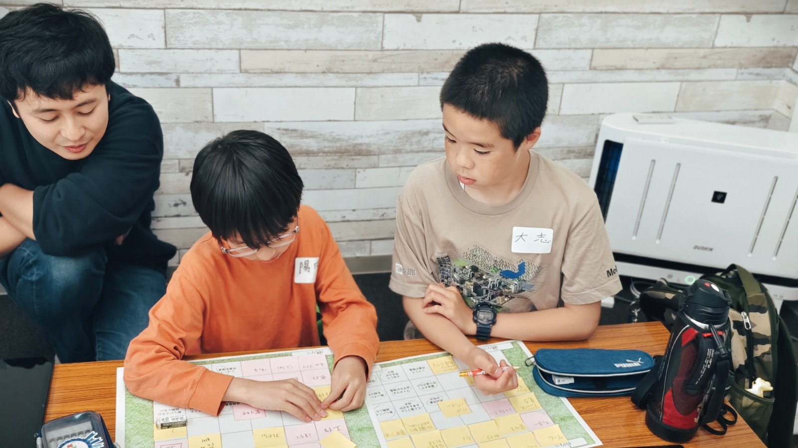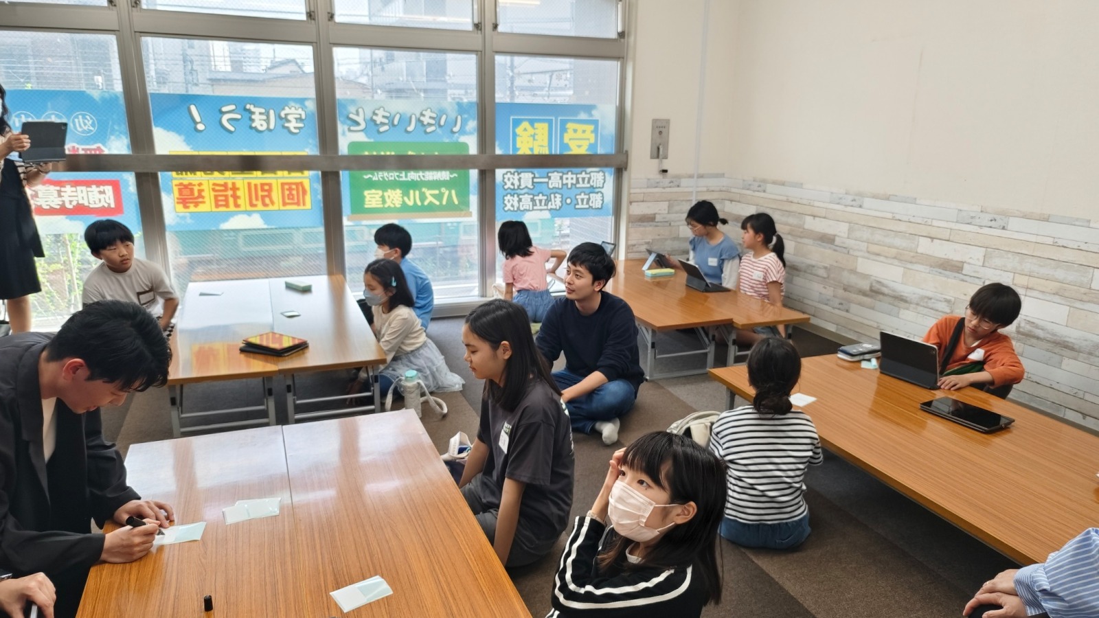- 東京下町・都電沿線で自由塾町屋教室とブラボーボックスを運営している教室長のヨシモトです!本日は企業コラボ企画の模様を教務主任ヨシザワから#要は丸投げ。とある小学校低学年の授業で「雪だるま」が答えになり「みんな雪だるま好きでしょう??雪降ったら作りたいよね〜〜」と言ったら「雪だるまなんて子供の遊びでしょ?」と軽くあしらわれた、教務主任吉澤です。自由塾町屋校では、先日課外授業を行いました。なんとあの大手企業のFUJITSUとのコラボ「富士通✖️自由塾町屋教室プレゼンツ〜ワクワク!未来発見の旅」でした。元自由塾の講師だった神田先生が現在の勤務先である富士通で特別チームを編成。子供達に素敵なイベントを企画してくれました。「夢はありますか?あなたは自分のことをどのくらい知っていますか」というテーマで自分について深掘りする授業でした。こんな風に書くと何だか哲学的で難しいのですが、そもそも自分と向き合う授業って無いですよね?性格だったり、得意であったり、興味のあることであったり・・それが将来の夢につながったらこんな素敵な人生は他には変えられません。「好きという気持ちを未来につなげて欲しい!!」という、神田先生率いる【チーム富士通】の熱い思いがつまった授業が展開されました。〜1時間目〜自分について向き合い、性格や得意なことなどを付箋に書き込み貼っていきました。〜2時間目〜世の中の仕事を大きなジャンルに分け、どんな職業が関わっているかパズルで理解を促しました。例えば「学校」の場合、先生の他に栄養士や執務、指定勤務医といったカードを貼り付けながら、多くの職業がそのジャンルを支えているのを知ってもらうという具合です。〜3時間目〜これまでのことを参考に新しくわかったことをまとめ「早速今日から出来る取り組み」をまとめてもらいました。普段はモジモジのハニカミ屋さんが多い生徒たちでしたが、意外にも堂々と楽しそうに参加。各チームに混ざる富士通のお兄さんお姉さんスタッフに夢を語っている子が多かったです。スタッフの方も教員免許所持の方、塾講師やサッカーチームの監督経験がある方が揃い、楽しそうに生徒と話をして下さいました。今回の目的はもう一つありました。それは、子供たちが生き生きと輝いている若者に一人でも多く触れることで、未来に憧れを持つようになって欲しい。ということ。生き生きしている姿を親が我が子に見せるのはなかなか難しいですよね?仕事で戦って疲れた姿や無防備な姿を間近で見せてしまっています。ですが若い社会人と触れることでそう遠くない未来の自分の姿に重ね合わせ、憧れを持つ貴重な機会になればなと思いました。さて、自由塾ではこんな風に子供たちの未来を意識した取り組みを勉強を通じて行っています。ご相談はお気軽にどうぞ。