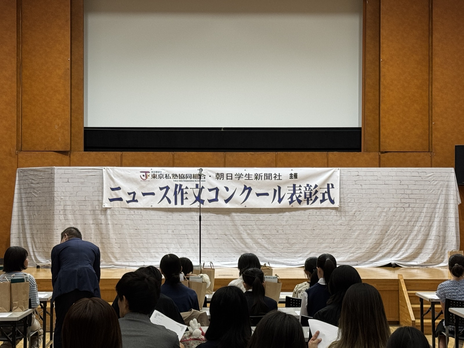 - こんばんは!東京下町・都電沿線で自由塾町屋教室とブラボーボックスを運営しているブラボー先生®こと、教室長のヨシモトです!よろしくお願いいたします!先日、朝日新聞本社において第十二回ニュース作文コンクール東京大会の表彰式が行われました。自由塾各教室が特に力をいれているこのコンクール。今年も沢山の町屋教室生が入選しました!
