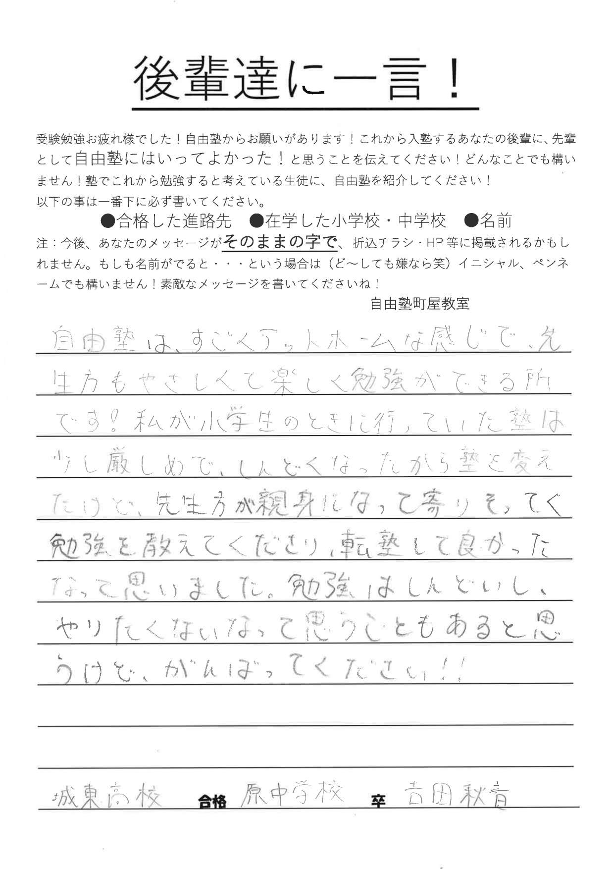 - 転塾してよかったなって思いました! 荒川原中卒 都立城東合格 吉田秋音