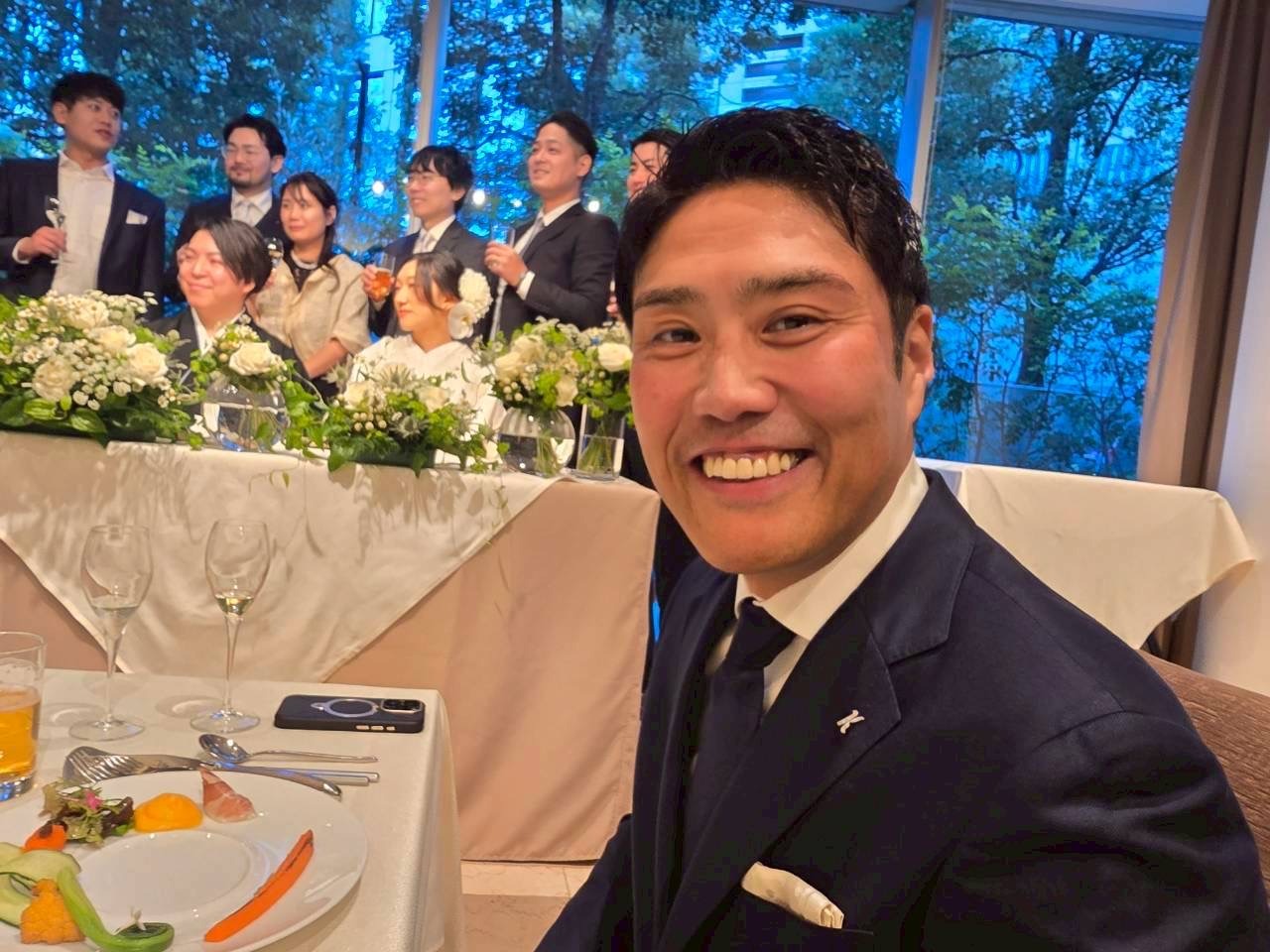 新郎は自由塾町屋教室の教務主任の荒川先生。実は彼、元々自由塾の塾生でした。初めて塾に来たのは、彼が小4の頃だったでしょうか。まだ半ズボンの少年だった彼は、初めてお母様に連れられて塾に来た日、「嫌だ」とごねて、勉強することなく泣きながら帰っていったのでした。ところが、何度か通塾するうちにすっかり塾っ子になり、高校生までずっと通い続け、大学生になると今度は講師として活躍してくれるようになりました。そして、町屋教室開校とともにそちらに移籍し、現在は同教室の教務主任を務めています。泣いてごねていた少年が、今では町屋教室長ブラボー先生こと、吉元先生の片腕として大車輪の活躍です。あの日、こんなに長い付き合いになるなんて、予想だにしませんでした。本当に人生って摩訶不思議。感慨深く彼のタキシード姿を見守ることでした。才気煥発な荒川先生のこと、間違いなく幸せな家庭を築くでしょう!「さらに幸あれ‼」そして、当日もうひとつうれしかったことが…。