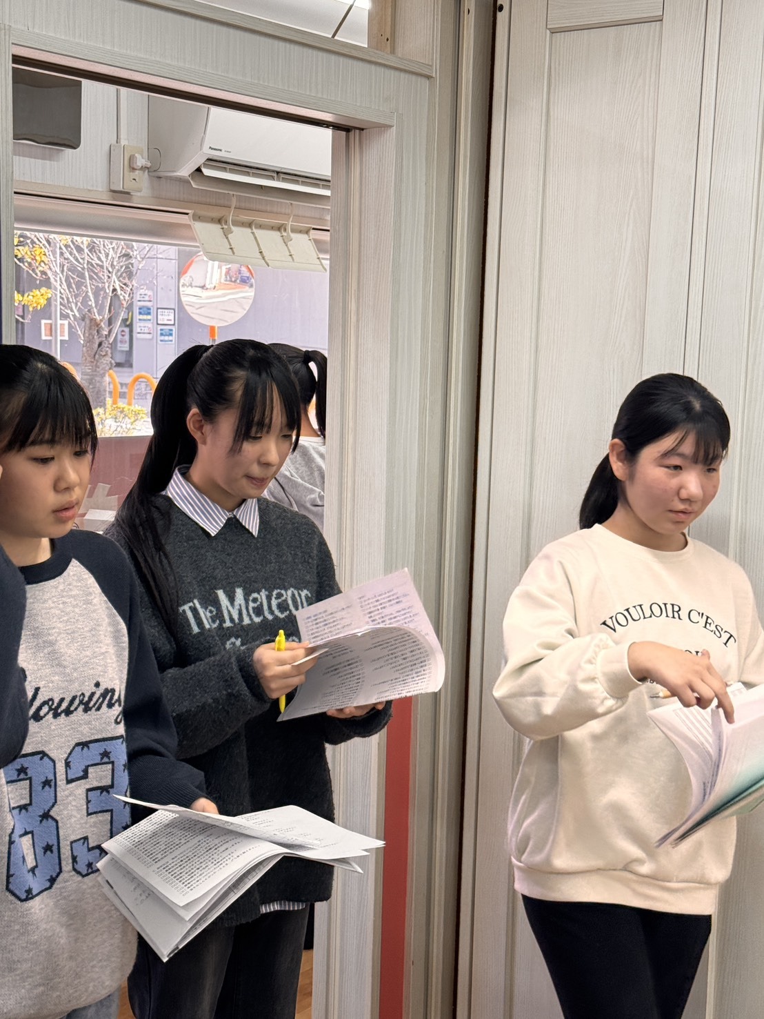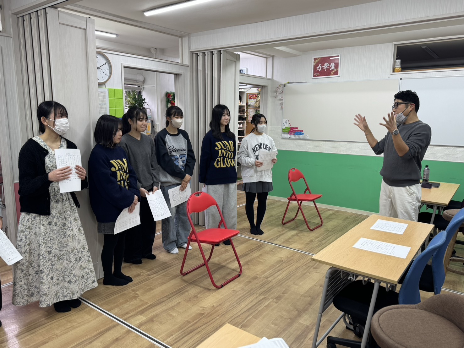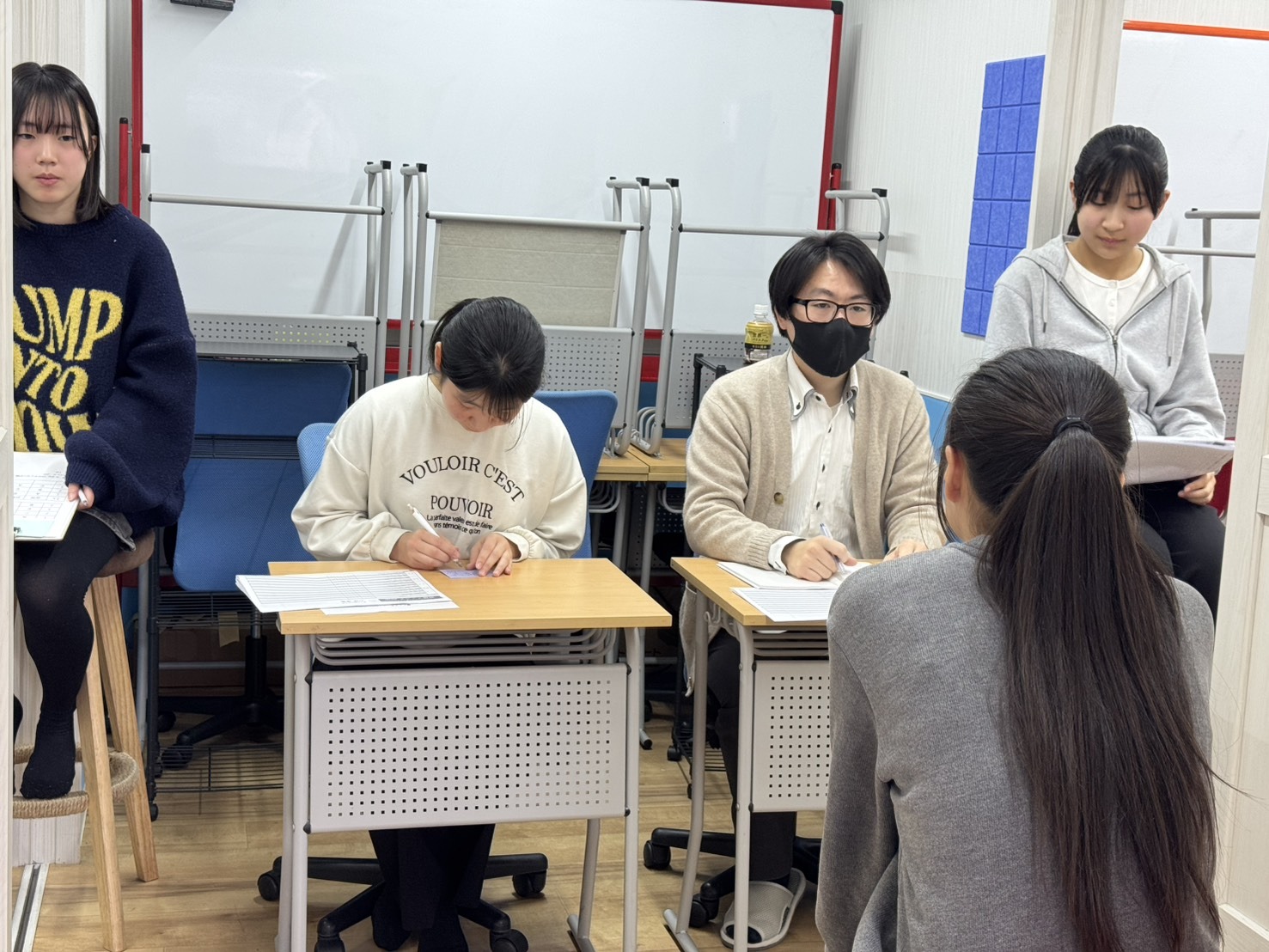 こちらは外部生も加わり、より緊張する実践的な練習会になりました。熱のこもったアドバイスは、時に生徒の号泣を招きます。ワタシ達も合格をつかみ取ってほしいので、真剣勝負です。