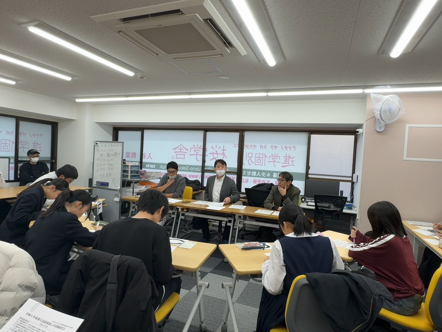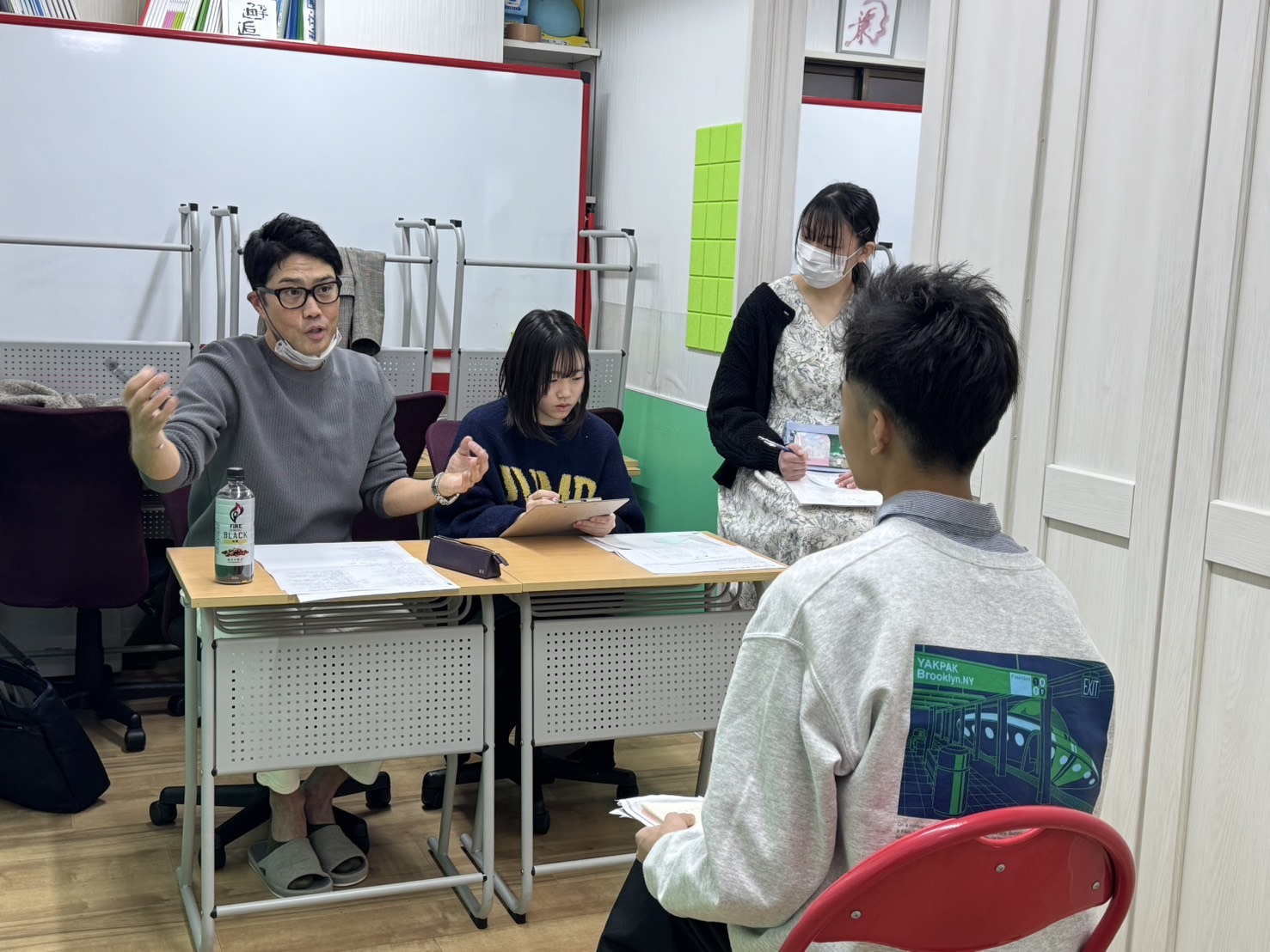 この後R:ed数名と自由塾生はそのまままたまた仲良し塾の進学個別桜学舎へ移動。今度は下町塾長会議主催の集団討論練習会へ参加です!