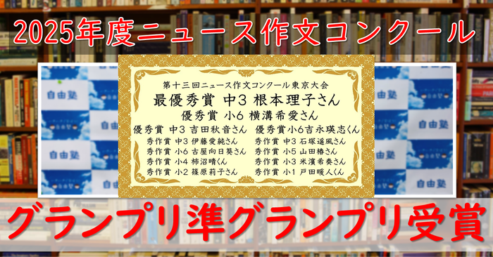 ▲ 【全学年入賞!】2025年度のニュース作文コンクールは、グランプリ/準グランプリ他多数入賞しました!