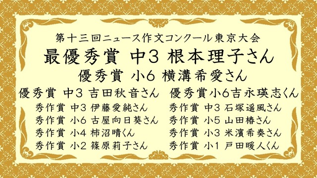 ニュース作文コンクールの入選速報が届きましたので、自慢担当(!)のヨシモから大々的に発表させていただきます!
